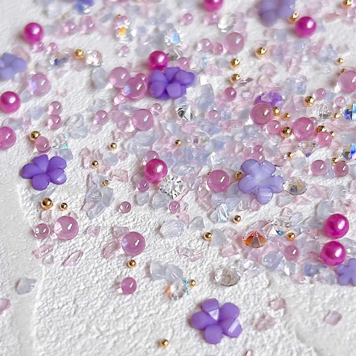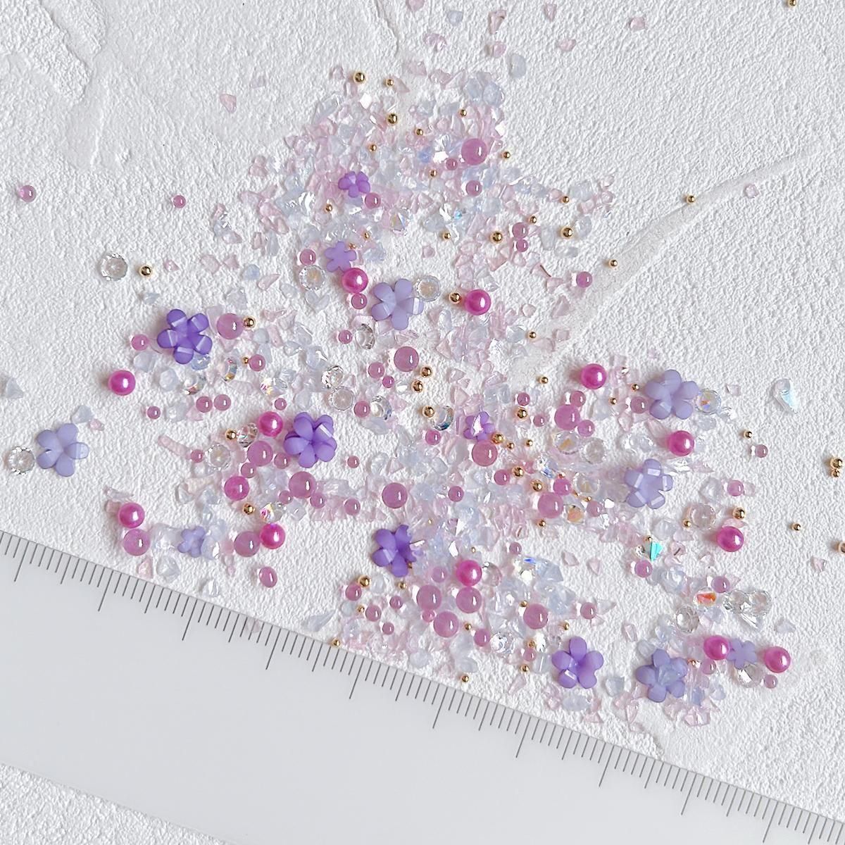 - ◎【封入】レジン封入素材 封入パーツ シェイカー デコパーツ ヘリオトロープ お花 パール ガラスブリオン GreenOceanオリジナルブレンド♪《No204》ミックス パープル