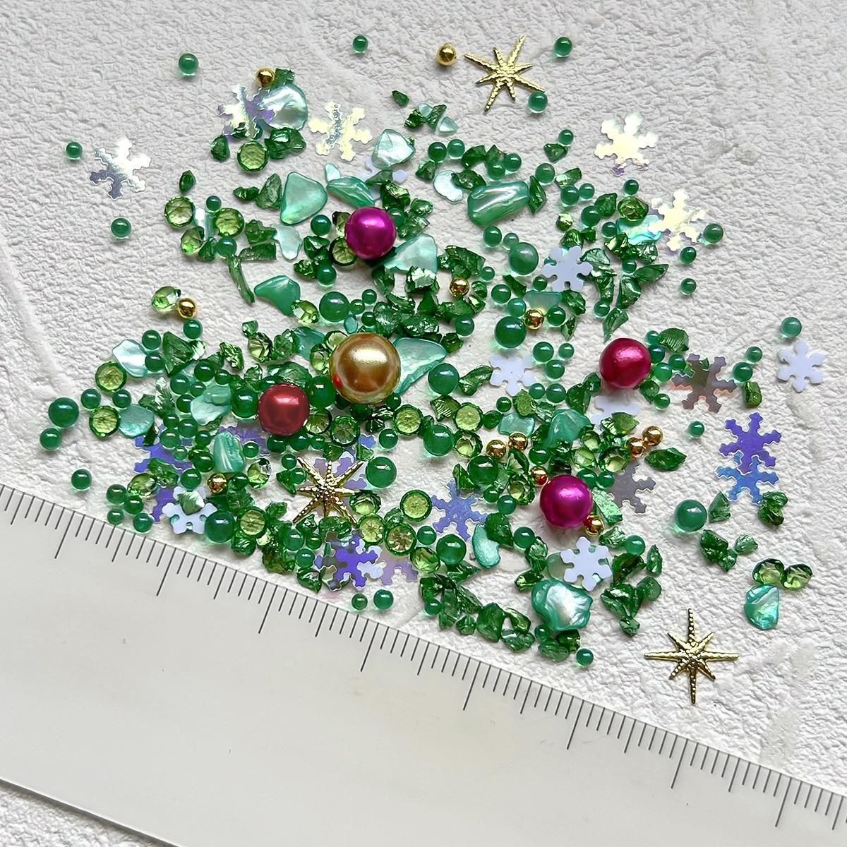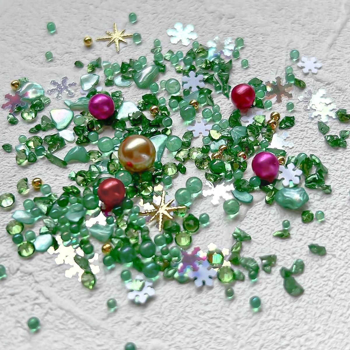 - ◎【封入】レジン封入素材 封入パーツ シェイカー デコパーツ ノエル クリスマス ツリー リース 雪 冬 緑 GreenOceanオリジナルブレンド♪《No206》ミックス グリーン