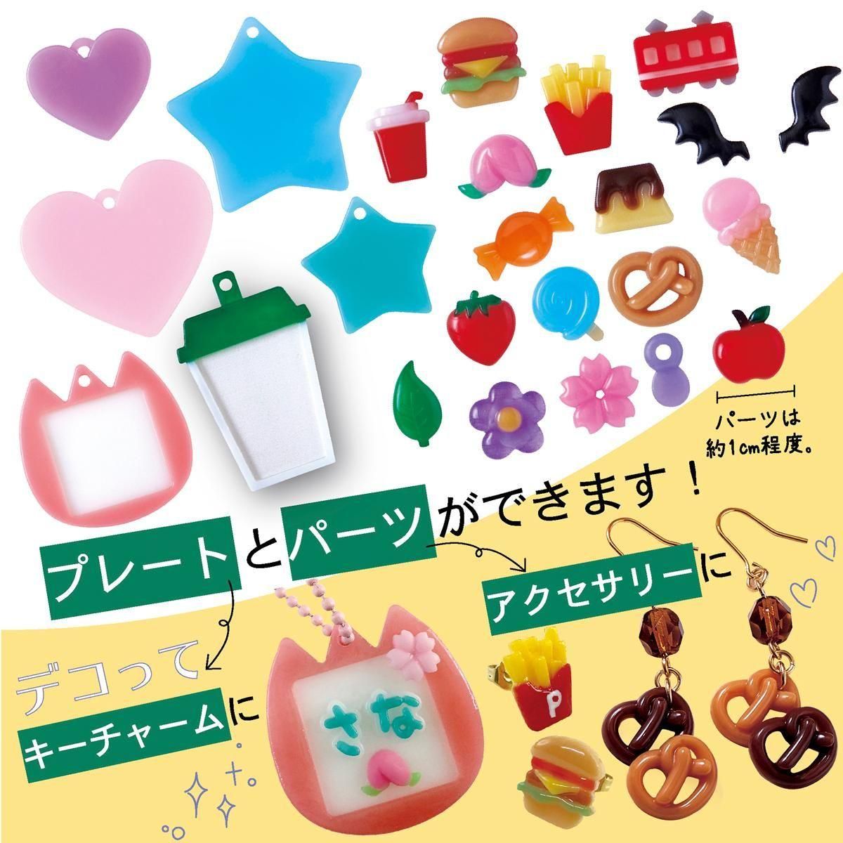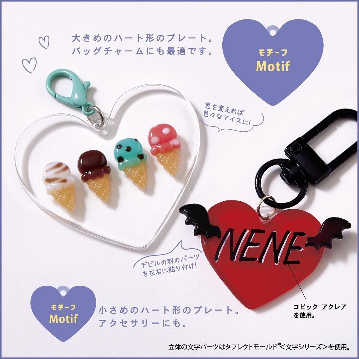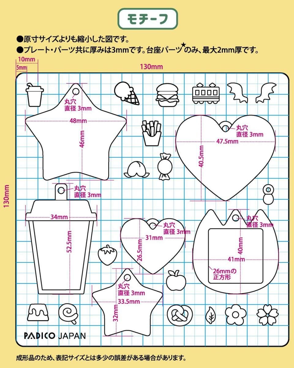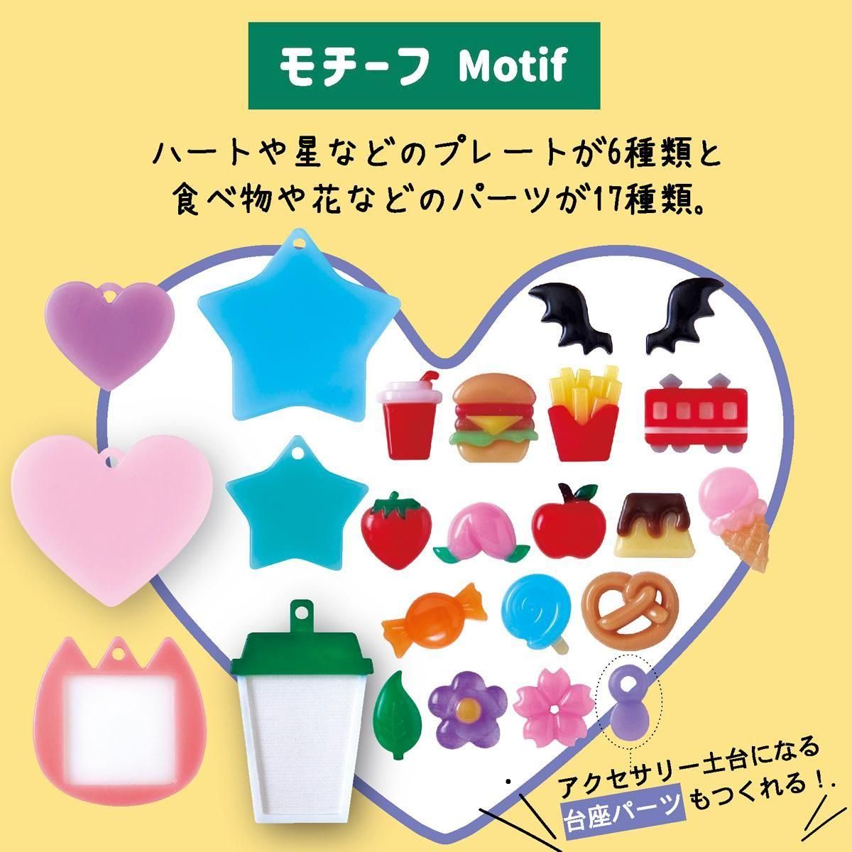 モチーフタイプはハートや星などの4種類のプレートと食べ物や花などの17種類のパーツが作れちゃうモールドだよ^^