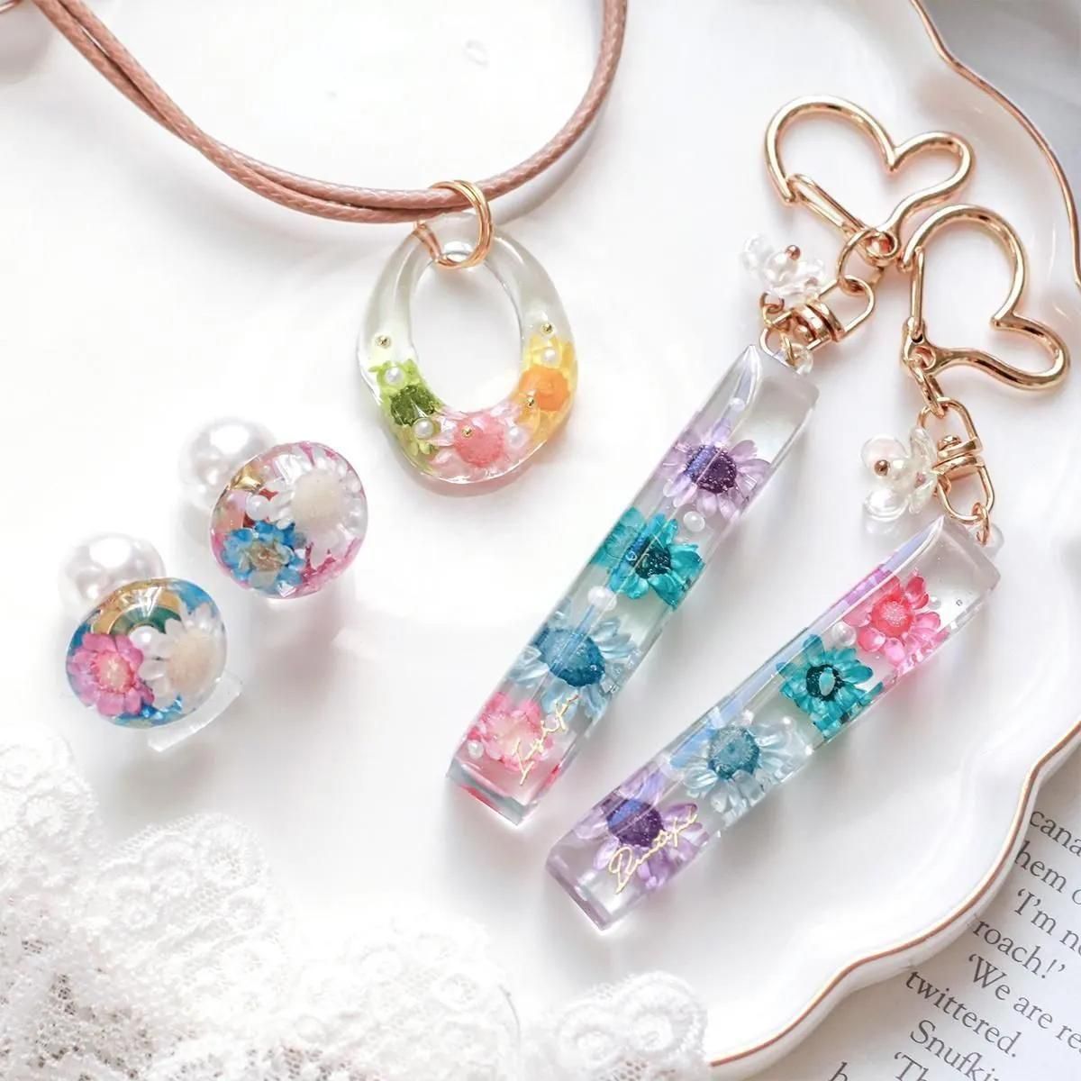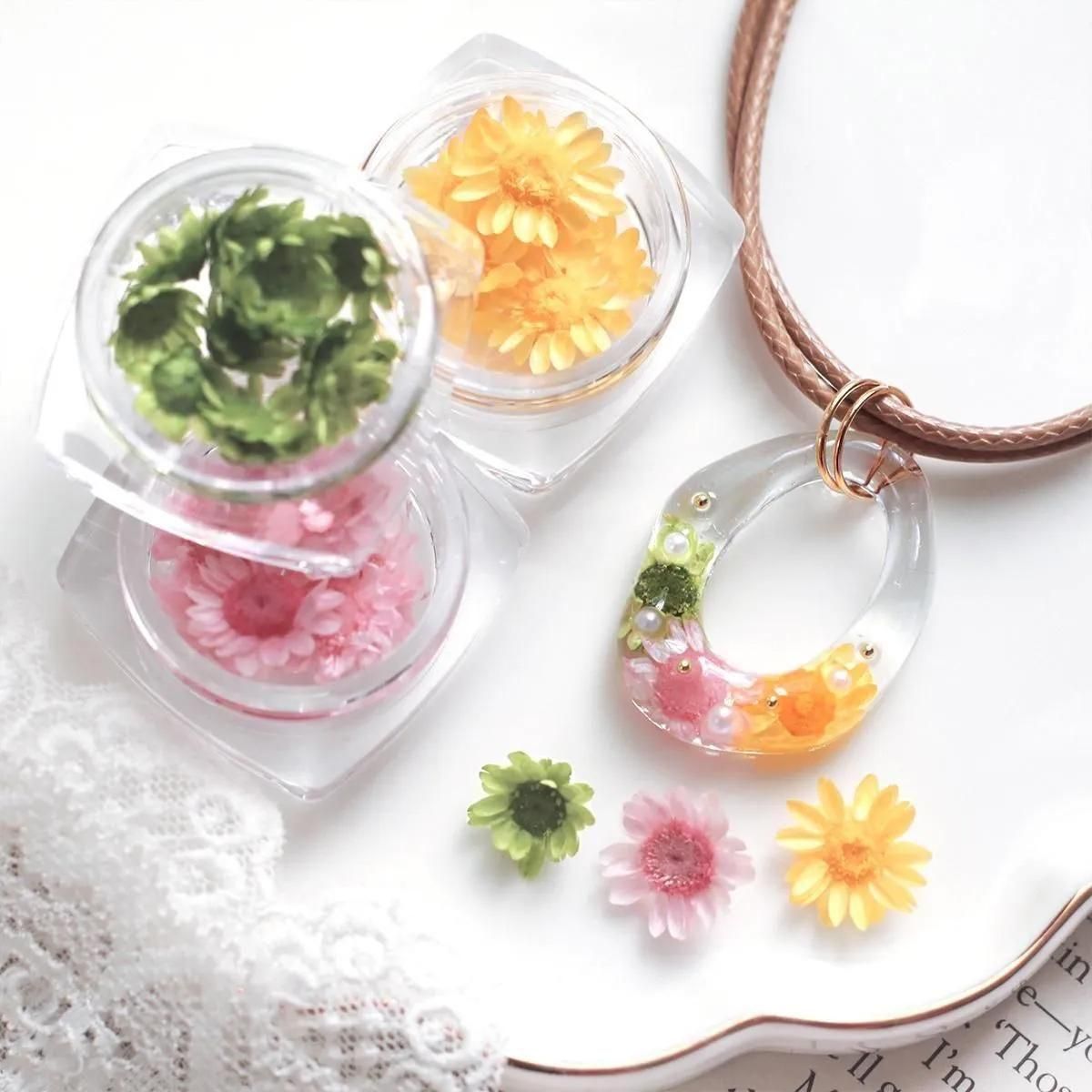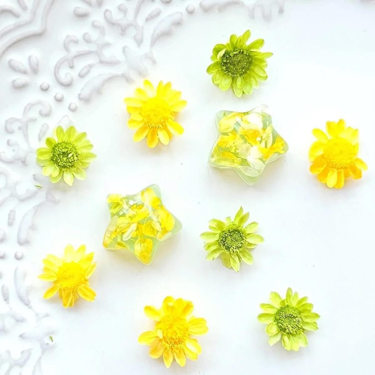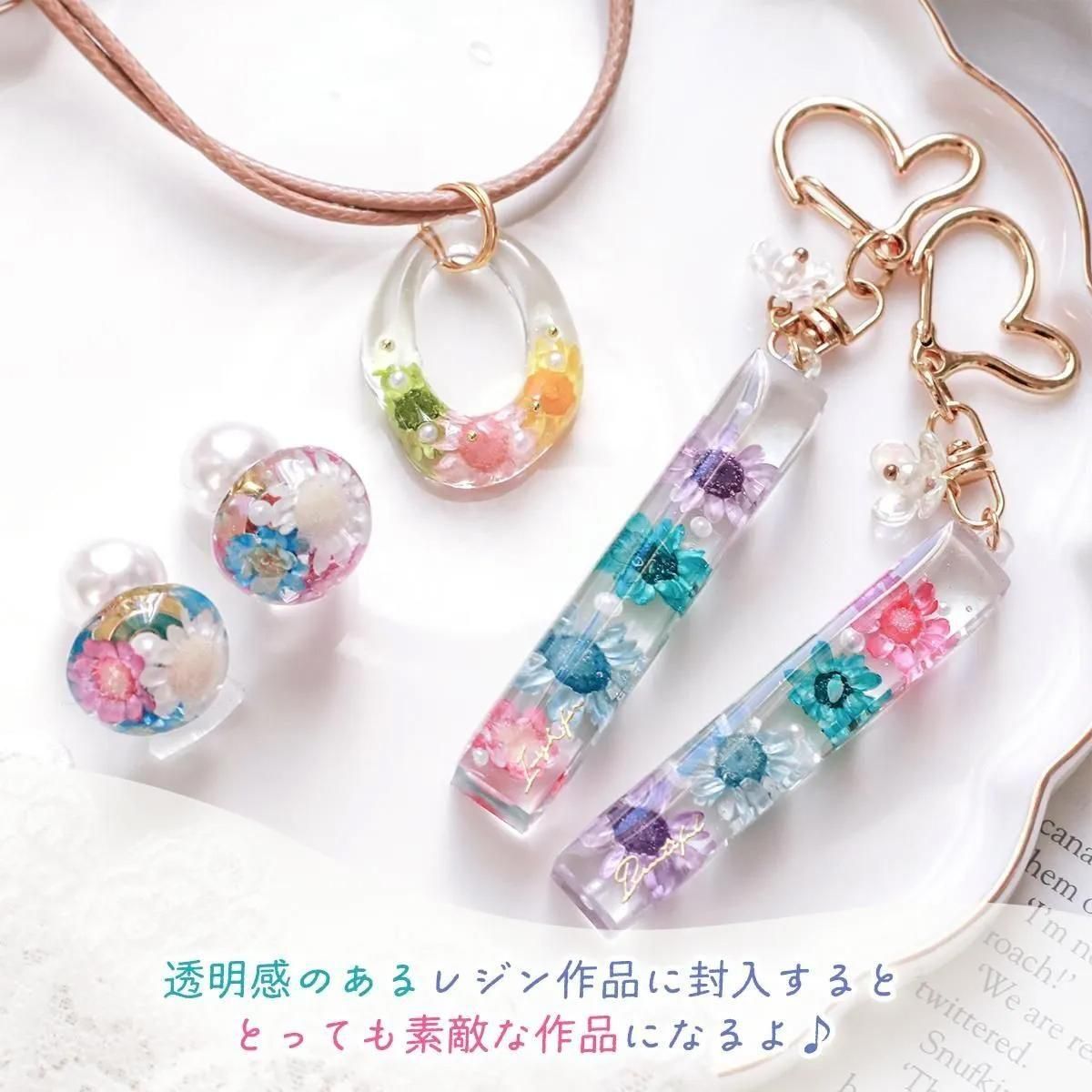 GreenOcean熟練スタッフが厳選した12種類のスターフラワーが入ったお得なセットだよ!透明感のあるレジン作品に封入すると素敵な作品に。お花は色ごとにケースに入っているから使いやすいよ!